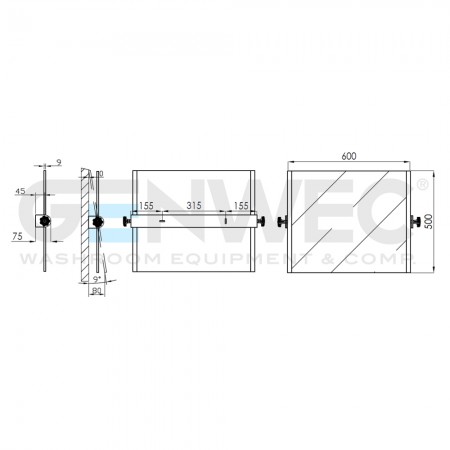 GW11 66 02 00 Дзеркало мобільне, алюмінієва рама (1 сорт)