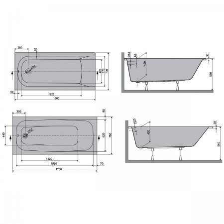 HAR17070 Harmony Ванна 170x70 см + ніжки, біла (1 сорт)