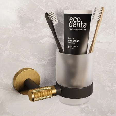 27503 (9221) LORENZO BLACK GOLD Склянка для зубних щіток, скло (1 сорт)