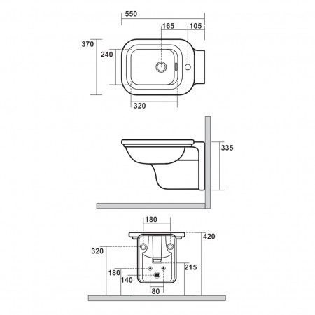 4125 K1 Waldorf Біде підвісний з 1 отв. під змішувач у комплекті з шумоізоляціійною пластиною та нак
