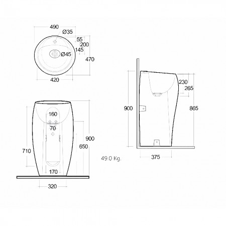 CLOFS5001504A CLOUD Раковина підлогова монолітна, чорний матовий (1 сорт)