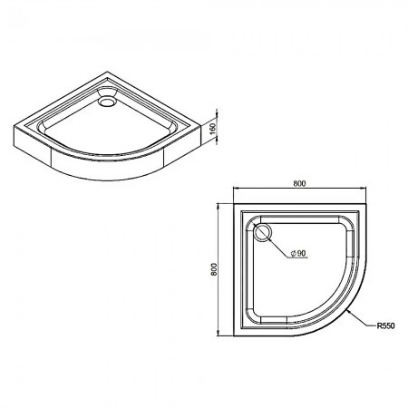 W90UT-405-090BT 5-кутовий душовий піддон Gem 90x90, білий (1 сорт)