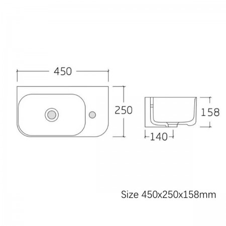 450250R Do It Раковина підвісна/меблева 450х250 см, 1 отвір під змішувач справа, білий глянець (1 со