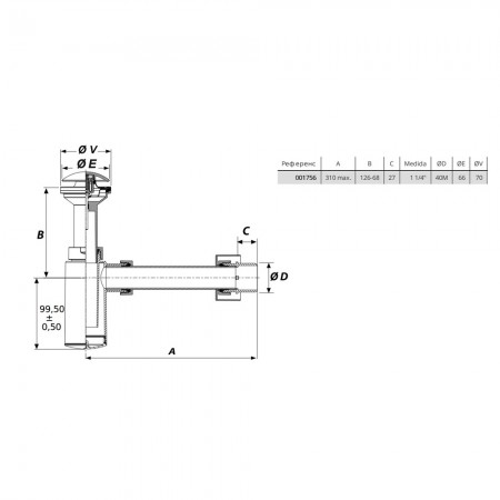 DEV001726 дизайн сифон для раковини з донним клапаном click-clack, хром випуск d32/d40 (1 сорт)