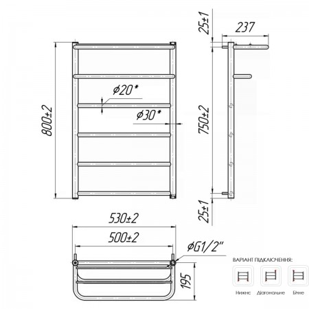 1.3.4200.01.P Рушникосушка Hotel 800х530/500, колір Полір.нержав. (1 сорт)