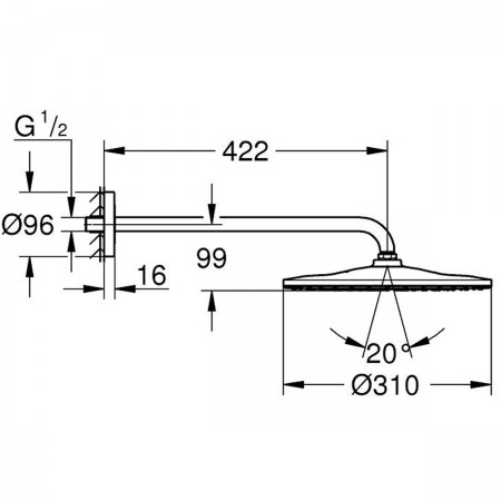 22121KF0 Rainshower Mono 310 Верхній душ з кронштейном, чорний (1 сорт)