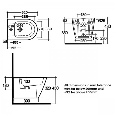 RST07514A FEELING Біде підвісне, Matt Cappuccino (1 сорт)