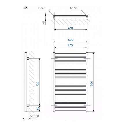 WGFIN090050K916SX Рушникосушка Fiona 900*500, колір білий глянець (1 сорт)