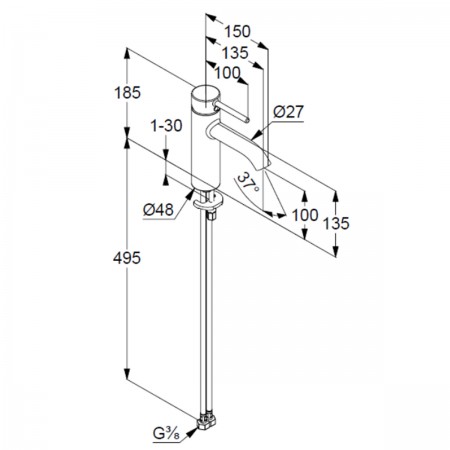 382860576 KLUDI BOZZ Змішувач для раковини високий, хром (1 сорт)