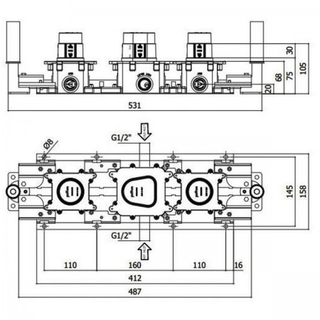 MDE019CR Paffoni modular box Зовнішня частина до термостата на 3 вих, вертик./горизонт. установка,х