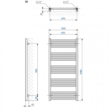 WGFIN090050K9M5SX Рушникосушка Fiona 900*500, колір чорний мат (RAL 9005) (1 сорт)