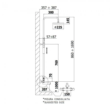ZCOL721LIQCR BIRILLO Душова система з термостатом, хром (1 сорт)