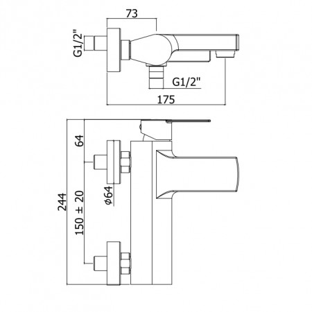 TA105NO70 TANGO Змішувач для раковини зі стіни, вилив 200мм, чорний мат (1 сорт)