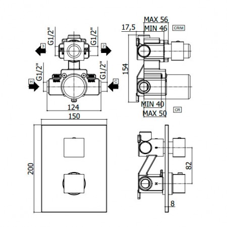 LEQ518CR LIGHT Змішувач для душу термостатичний прихованого монтажу, хром (1 сорт)