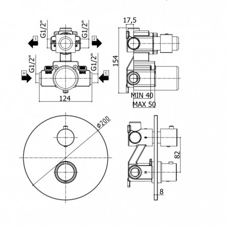 LEQ518CR LIGHT Змішувач для душу термостатичний прихованого монтажу, хром (1 сорт)