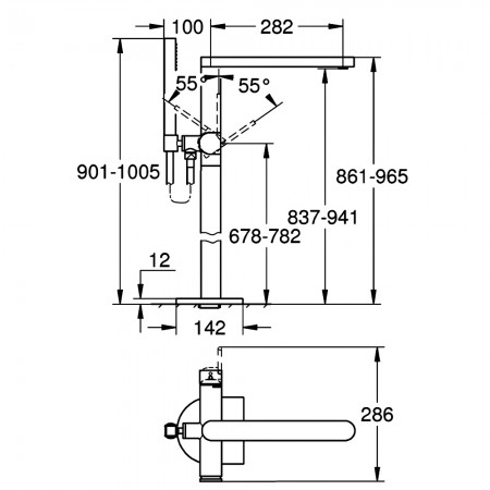 29307003 PLUS Одноважільний змішувач д/ванни на 4 отвори, хром (1 сорт)
