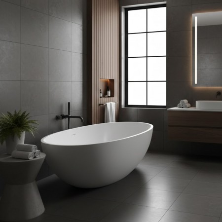 18080130UM Ванна ART штучний камінь з сифоном 179,8x85 см, біла матова (1 сорт)