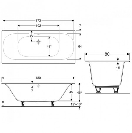 554.004.01.1 Soana Ванна прямокутна 180x80см, тонкий край, злив та перелив по центру, з ніжками, кол