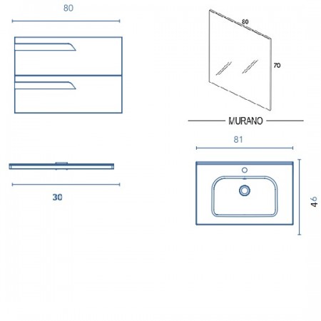 C0072598 Vitale 80 Комплект: 125622 тумба під раковину 80 см126224 раковина 80 см+121517 дзеркало+1