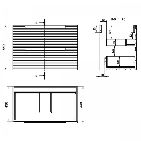 074817V ACQUA Тумба 80 з овальною раковиною, темний горіх (1 сорт)