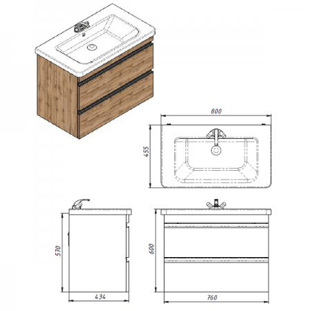 753080O FRAME Тумба натуральний дуб 80см з раковиною та сифоном (1 сорт)