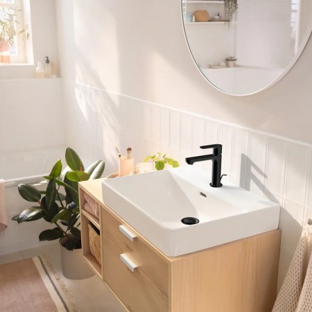 72588670 Rebris S Змішувач д/раковини 110 CoolStart EcoSmart з д/к, чорний матовий (1 сорт)