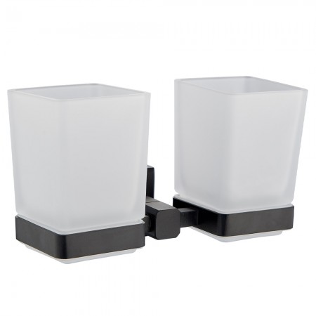 9928А (8304) BLACK Склянка для зубних щіток подвійна Leonardo, скло, чорний мат (1 сорт)