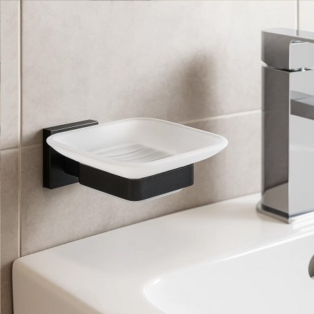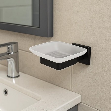 9928А (8304) BLACK Склянка для зубних щіток подвійна Leonardo, скло, чорний мат (1 сорт)