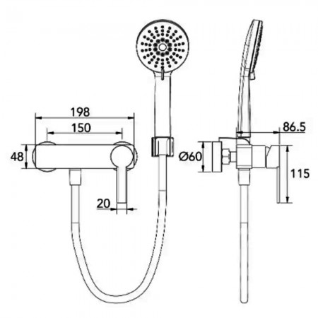 HB-GR4007 Змішувач для душу з душовим набором, хром (1 сорт)