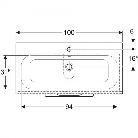 500.995.00.1 Вбудовуваний умивальник Geberit Selnova Square 80см, отвір для змішувача в центрі, пере