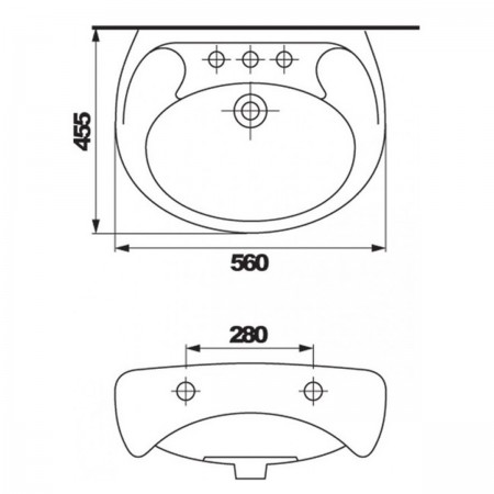 K07-028-EX1 EKO Раковина 2000 55 з отвором для змішувача, білий глянець (плівка) (1 сорт)