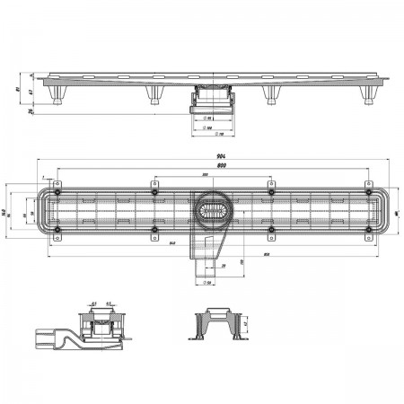 85010215B D-Line Душовий канал 85 з низьким S-подібним сифоном і накладкою, з горизонтальним виводом