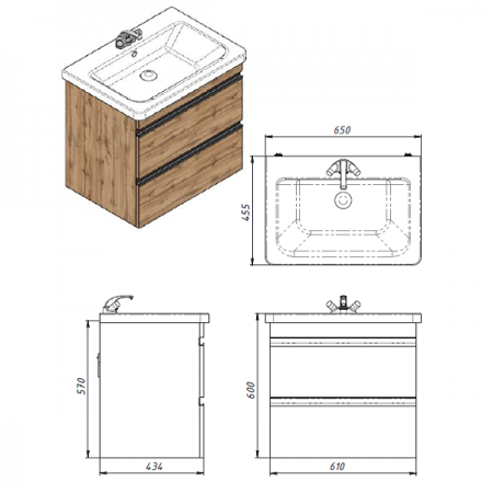 753065O FRAME Тумба натуральний дуб 65см з раковиною та сифоном (1 сорт)