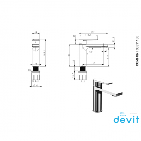 33311130 COMFORT Змішувач д/раковини без донного клапана, хром (1 сорт)