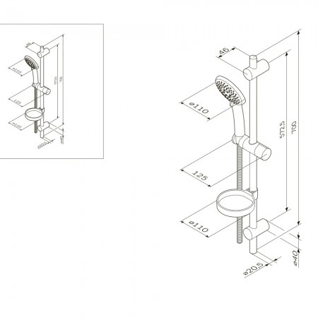 F0780400 Like Душова система: зміш. д/душу термостат,верх.душ d250 мм,ручн.душ d110 мм,перемикач (1