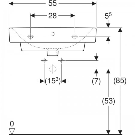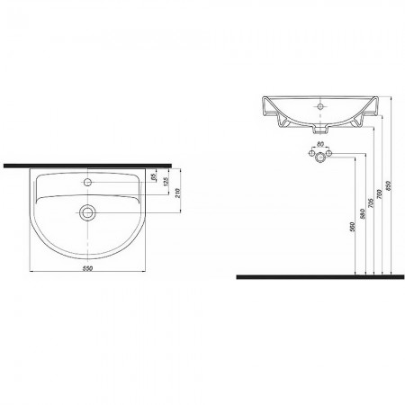 2321550UA STATUS Раковина 55 см, з переливом, з отв.для зміш по центру (1 сорт)