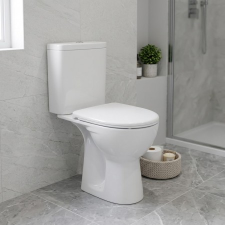 L79046000 Freja Premium Унітаз-компакт косий вип., нижній підвід, дюропластове сидіння з мікроліфто