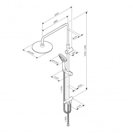 F0790033 Gem,душ.сист,набір:верх.душ d220 мм, руч.душ 1ф-ція d 110 мм, душ.штанг (1 сорт)