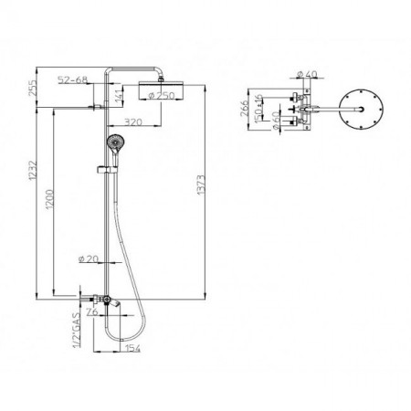 L10402 030 ELIOS Душова система з термостатом з виливом, верхнім душем 250mm та ручним душем зі шлан
