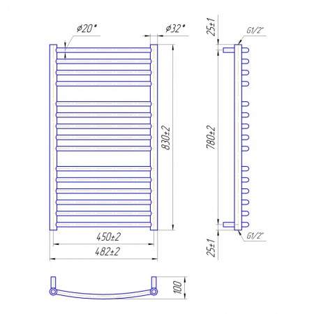 1.2.1100.03.BM Рушникосушка Фенікс 830х482/450, колір чорний мат (1 сорт)
