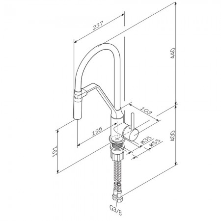F8007822 Like, змішувач для кухні з каналом для питної води і гнучким виливом, чорний (1 сорт)