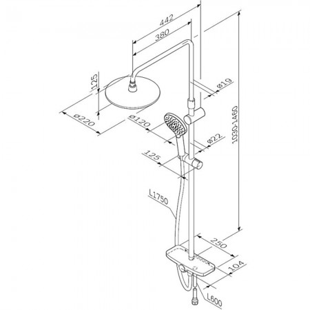 F0780700 Like Душова система з верхнім душем 220мм, хром (1 сорт)