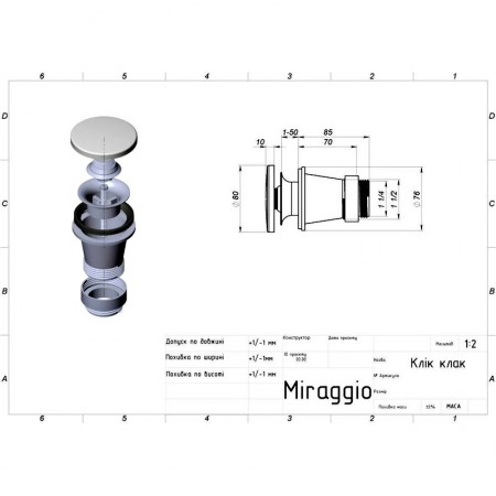 Донний клапан click-clack miramarble, білий (1 сорт)