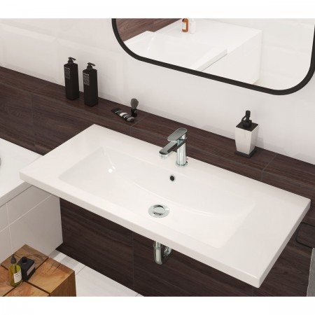 Умивальник меблевий COMO 80 з отвором для змішувача, з переливом, білий глянець (картон) без логотип