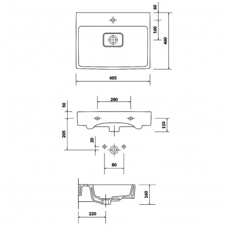 K118-002 VIRGO Раковина меблева -80 см, білий глянець (1 сорт)