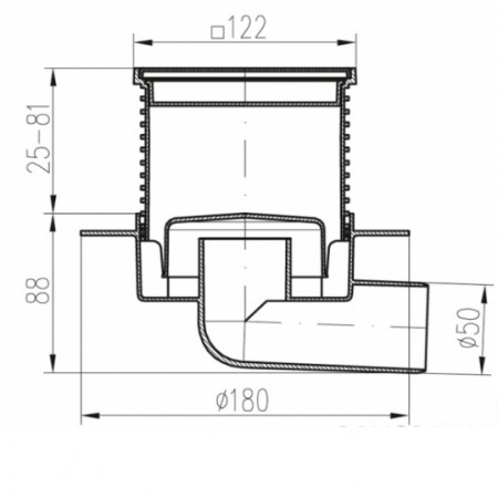 425 XL Двокорпусний трап з горизонтальним підключенням DN50, h 113-169мм, сухий сифон Neptun, з флан