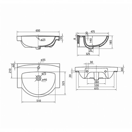 L71965000 FREJA Раковина меблева 65 см, з 1 отв.для зміш., з переливом, білий глянець (1 сорт)