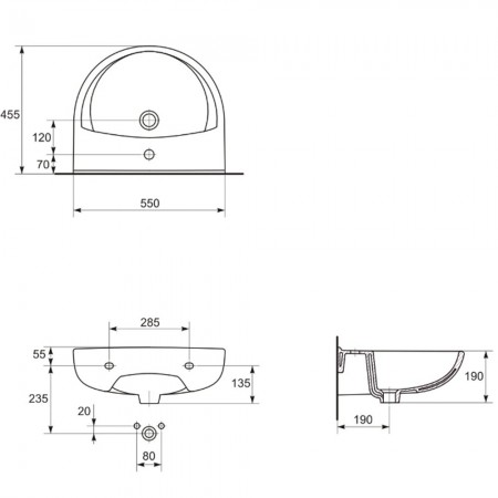 K08-261 PRESIDENT Раковина 55 ONE HOLE з отвором для змішувача (картон) (1 сорт)