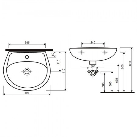 M1116000U IDOL Раковина 60см, з 1 отв.під зміш., з переливом, білий глянець (1 сорт)