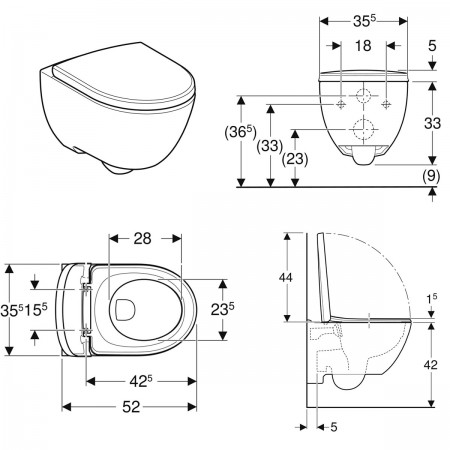 502.826.00.1 Підвісний унітаз воронкоподібний Geberit Modo, прямокутна форма, закрита форма, Rimfre